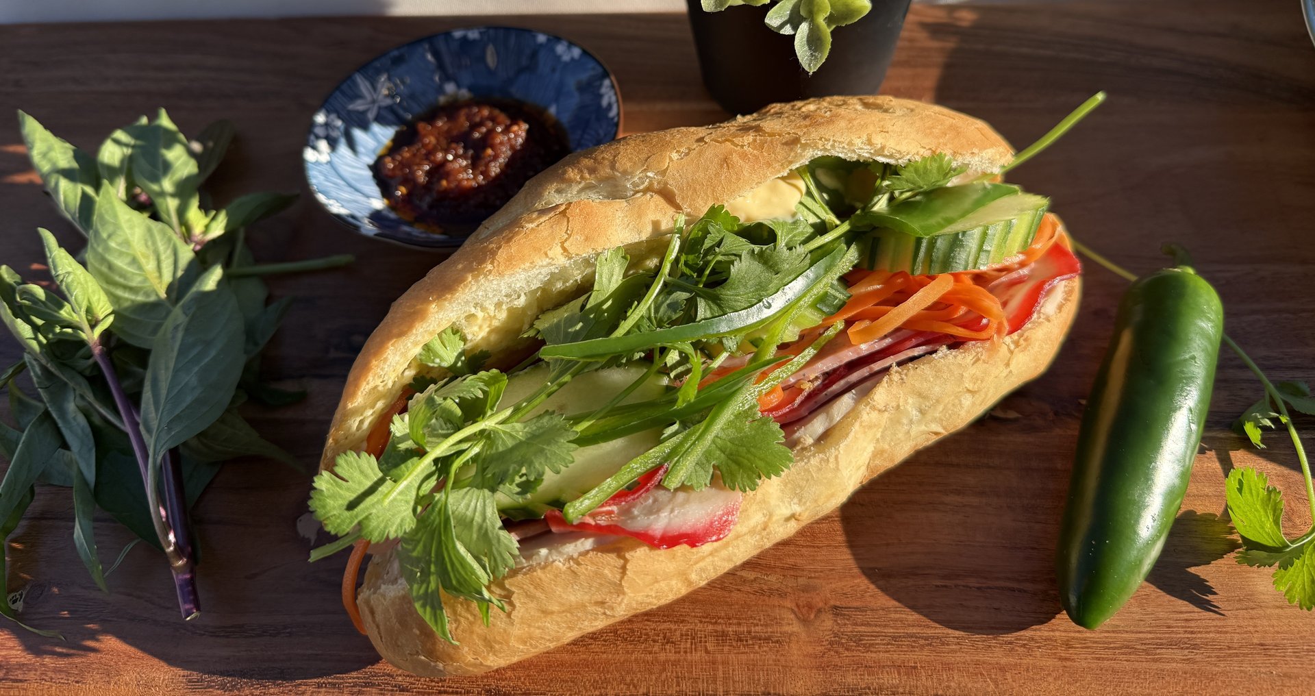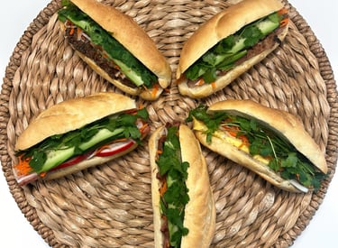 We bake our baguettes fresh daily when serving the community, ensuring every bite of our bánh mì is crisp, warm, and satisfying. Each sandwich is layered with hand-selected vegetables and herbs, house-ground meats for patties and sausages, and our signature pickled veggies, pâtés, spicy infused oils, marinades, and sauces. It’s a savory snapshot of Southeast Asia’s shared food culture.